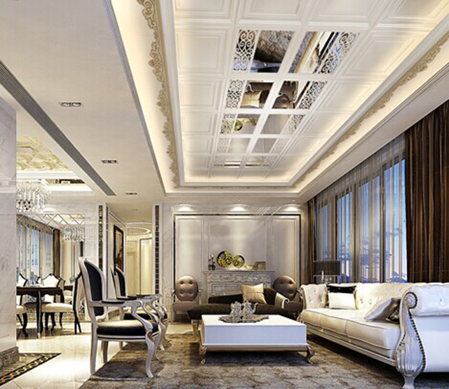 凹凸式吊頂是指表面具有凹入或凸出構(gòu)造處理的一種吊頂形式,這種吊頂造型復雜富于變化、層資感強、適用于廳、門廳、餐廳、等頂面裝飾。它常常與燈具(吊燈、吸頂燈、筒燈、射燈等)搭接使用。