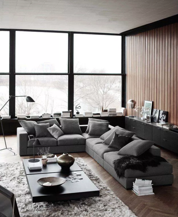 大面積的固定窗也很受歡迎,很好的取到室外的美景,它不僅采光好,而且密封、隔熱性較好,但是不能開啟,只能用在家里的某一部分,因?yàn)樗荒荛_窗換氣。