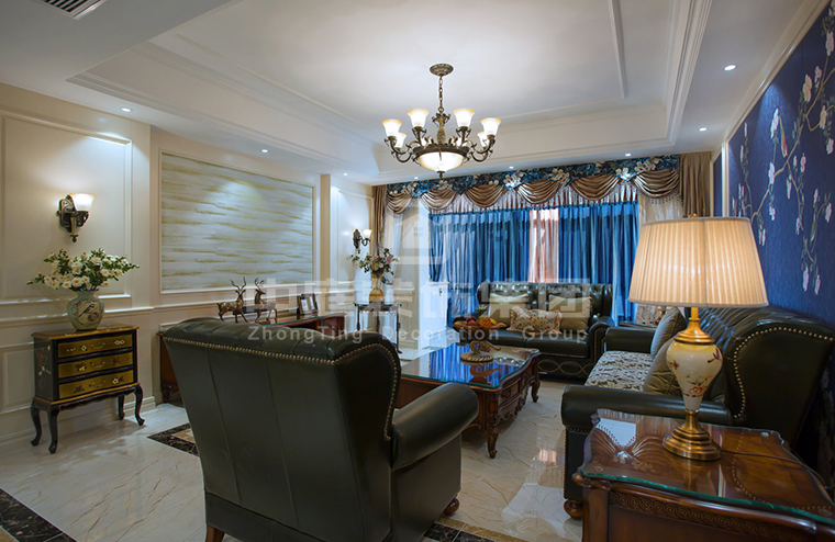 對(duì)于采光不好的客廳來講,其實(shí)也不需要太多的燈光源設(shè)計(jì)就么打造出一個(gè)不開燈也很明亮的空間,由于現(xiàn)代很多客廳都與陽臺(tái)相連,這樣就會(huì)令整個(gè)客廳的入深比較長,自然客廳采光也不那么好,尤其是樓層比較低的情況下,而采用不吊頂?shù)?/span>裝修設(shè)計(jì),讓乳白色的天花板與淺黃色的地板形成對(duì)比,拉出整個(gè)客廳的立體空間感,一盞中式風(fēng)格的羊皮吊燈配以沙發(fā)角處的落地?zé)?,完全能滿足整個(gè)客廳的照明需求,而且簡約的豎長壁紙電視墻裝修,又在視覺上拉長了整個(gè)客廳的高度,配以從陽臺(tái)處微透進(jìn)來的光線,整個(gè)客廳明暗適宜,溫馨又舒適。