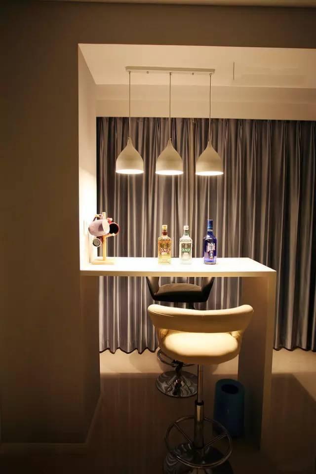 小巧的吧臺占據(jù)的位置非常小,利用陽臺和客廳之間的位置,做上一個小吧臺吧,這里的光線又好,晚上欣賞夜景也方便,實在是提升吧臺浪漫程度的一個好地方!
