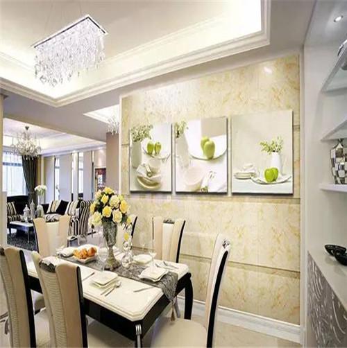 餐廳是進(jìn)餐場(chǎng)所,餐廳應(yīng)營(yíng)造出一種能夠增進(jìn)食欲、熱情好客的畫面氛圍,給人新鮮清爽的就餐感覺(jué)。因此可以選擇一些果蔬、插花、靜物、自然風(fēng)光等題材的掛畫;如有吧臺(tái),可掛一些對(duì)應(yīng)酒杯洋酒的現(xiàn)代油畫。
