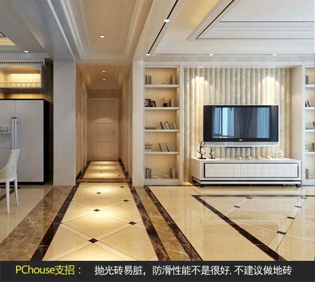 PS:如果使用了拋光磚,平時(shí)家中盡量開(kāi)小燈,還要避免燈光直射或通過(guò)反射影響到眼睛;由于白色和金屬色瓷磚反光較為強(qiáng)烈,不適合大面積在居室使用。