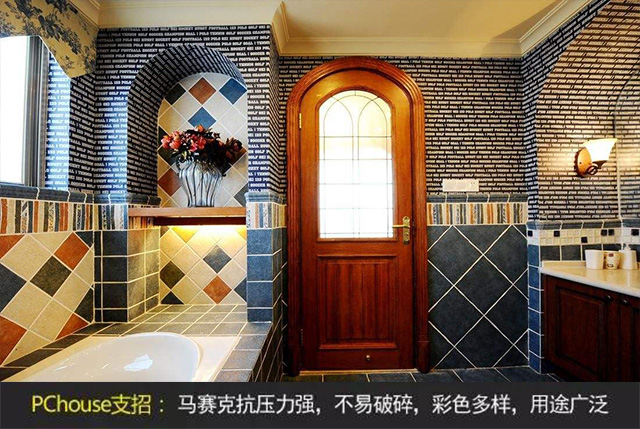 馬賽克瓷磚是地面和墻面裝飾使用較多的裝飾建材之一。馬賽克具有精致小巧、色澤多樣,可用來(lái)拼出各種美觀的圖案,對(duì)于墻面和地面的裝飾效果遠(yuǎn)遠(yuǎn)的超過(guò)了普通的墻磚和地磚。馬賽克種類(lèi)繁多,規(guī)格多,薄而小,質(zhì)地堅(jiān)硬,耐酸、耐堿、耐磨、不滲水,抗壓力強(qiáng),不易破碎,彩色多樣,用途廣泛。