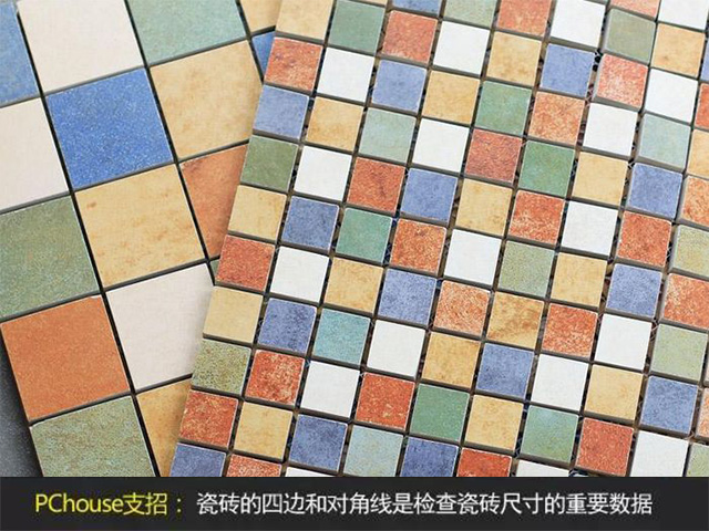 在購(gòu)買(mǎi)瓷磚的現(xiàn)場(chǎng)測(cè)量。用直尺或卷尺測(cè)量,瓷磚的四邊和對(duì)角線,檢查尺寸。