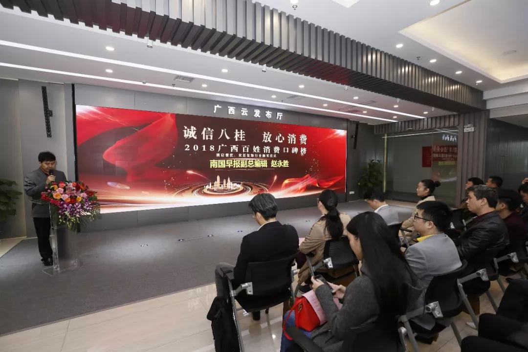 2018年11月20日,注定是不平凡的一天,“誠信八桂 放心消費(fèi)——2018廣西百姓消費(fèi)口碑榜頒獎(jiǎng)儀式”在廣西日?qǐng)?bào)社云發(fā)布廳舉行,這是一份歷時(shí)2個(gè)多月,超20萬人參與網(wǎng)絡(luò)投票,一份最具市場(chǎng)、百姓認(rèn)可的行業(yè)消費(fèi)榜單!