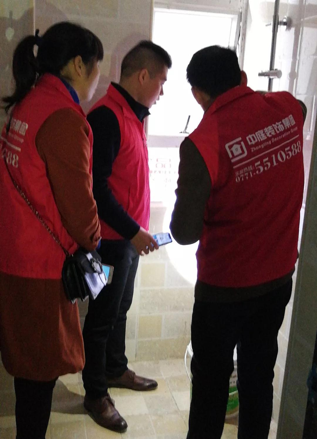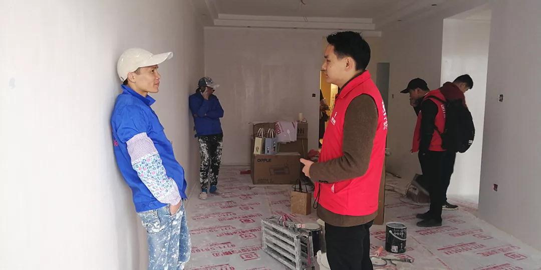 巡檢遇上業(yè)主正在施工現(xiàn)場,巡檢人員和業(yè)主交流;業(yè)主表示對公司的服務(wù)比較滿意,項(xiàng)目經(jīng)理和現(xiàn)場的工人都很好,有朋友需要裝修肯定會(huì)第一個(gè)推薦集團(tuán)。