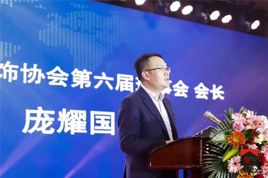 ▲廣西建筑裝飾協(xié)會會長龐耀國作2018年協(xié)會工作報告