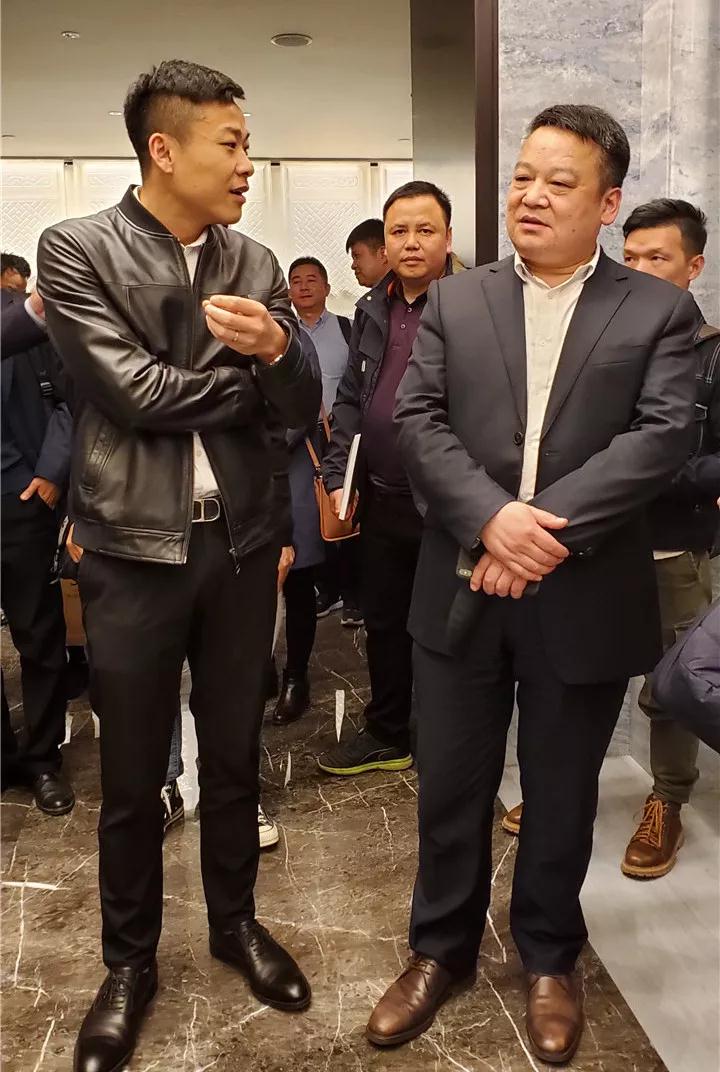 ▲丁胡總裁會(huì)上就裝配式家裝前景應(yīng)用與亞廈董事長(zhǎng)丁海富交流