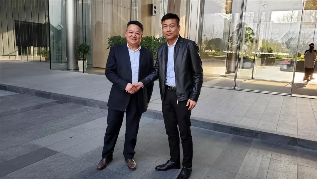 ▲亞廈董事長(zhǎng)丁海富與丁胡總裁親切交流