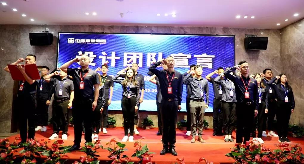 ▲中庭裝飾副總經(jīng)理鄒恒元帶領設計團隊管理人員簽署設計服務承諾書