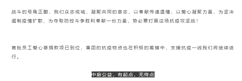 抗疫攻堅(jiān),人人有責(zé)丨中庭集團(tuán)首批員工愛心募捐已到位
