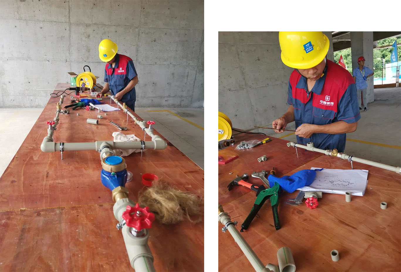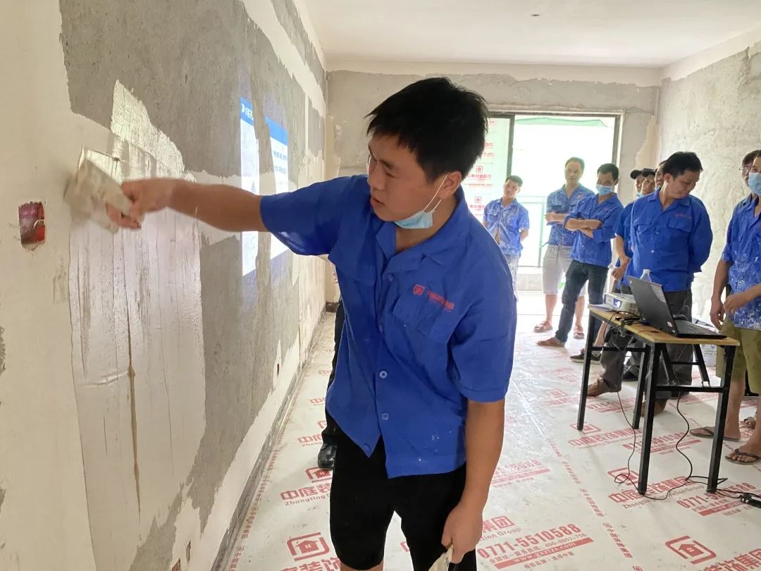 本次比賽從工程部的三個片區(qū)中精心選出優(yōu)秀水電工,瓦工,膩?zhàn)庸じ魅M,雜工5組,一共32支隊(duì)伍參加本次比賽。