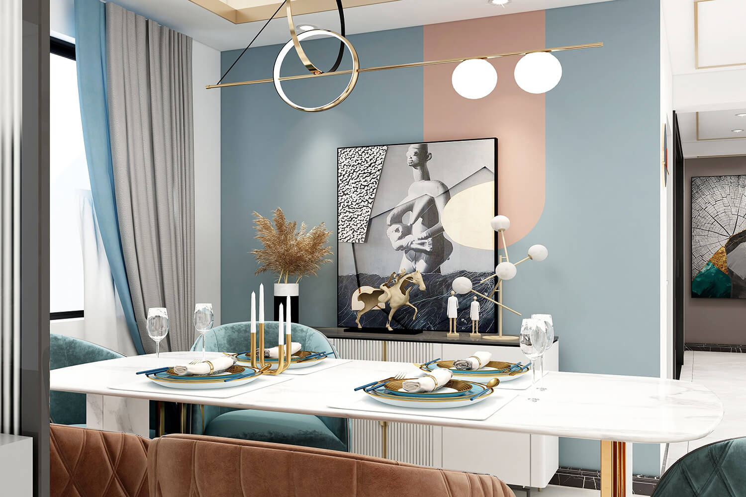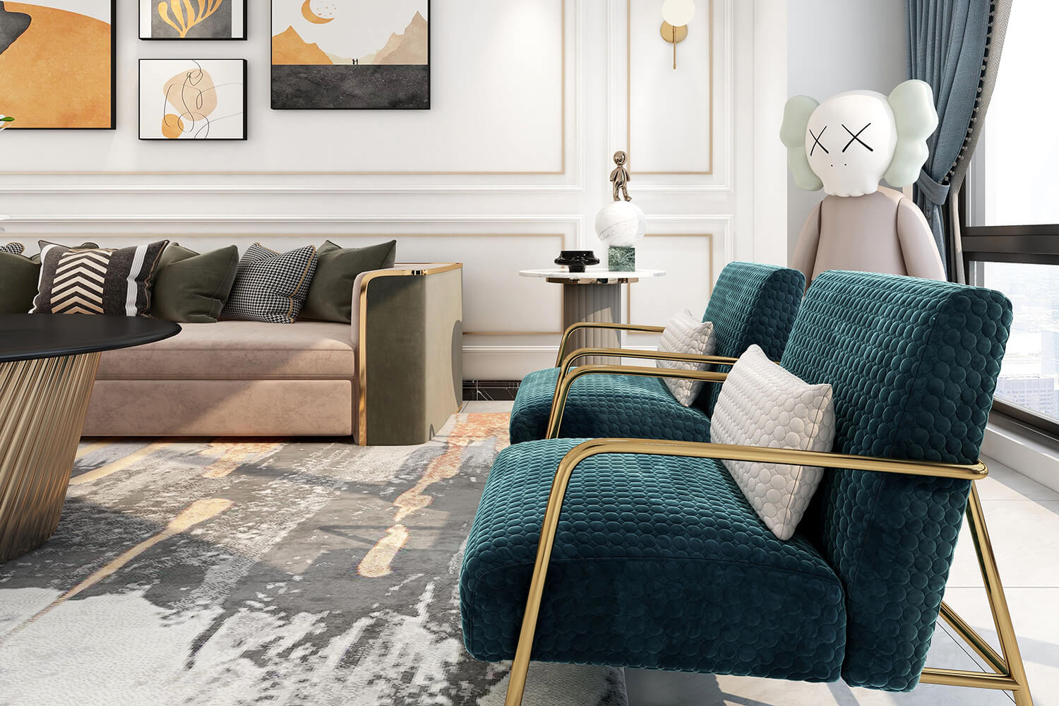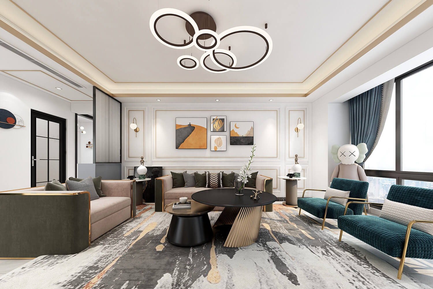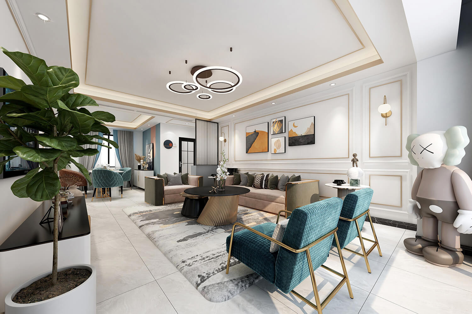 瀏覽量:384本案總面積118㎡,整體配色以白色為主色調(diào),用充滿清新氣息的綠與藍(lán)為空間帶來清爽感覺,點(diǎn)亮空間視覺色彩感知,展現(xiàn)別具一格的視覺感,華麗的金屬色澤增添輕奢質(zhì)感。