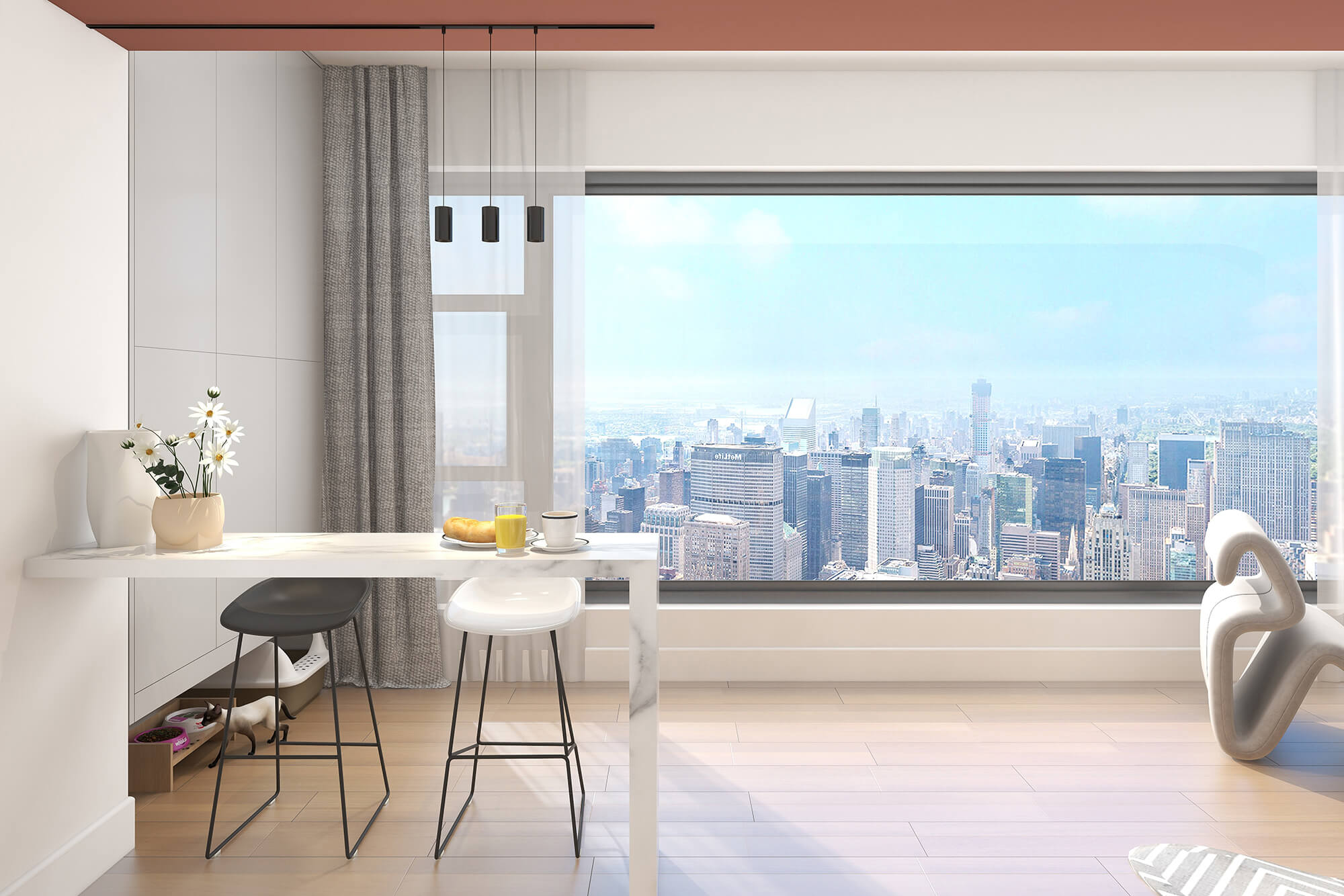 瀏覽量:444本案設計師基于人與動物、環(huán)境之間的大融合的考慮,實現(xiàn)了人們想要追求的一種泛空間,家庭不再是以空間而定位,而是以氛圍而定位。比如說男女主人在辦公的時候,可以在客廳、餐廳跟貓咪玩耍,或者在做飯的時候也能夠和外面的人互動,空間既獨立又融合。