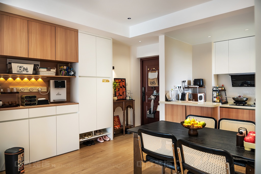 瀏覽量:118每一處細(xì)節(jié),都是他們對“把日子過成詩,讓家裝滿故事”的詮釋。以原木的溫潤、白調(diào)的清爽為基底,在玄關(guān)處嵌入復(fù)古邊幾,擺上藝術(shù)感的裝飾畫,仿佛時光在此打了個溫柔的結(jié);餐廚區(qū)的咖啡角裝滿對生活的小確幸,與開放式廚房的煙火氣交融,是晨起的咖啡香與深夜的飯菜香的浪漫邂逅;客廳里,黑色皮沙發(fā)搭配復(fù)古風(fēng)抱枕,一旁的藝術(shù)綠植蜿蜒生長,就像主人對生活的熱愛肆意又熱烈。