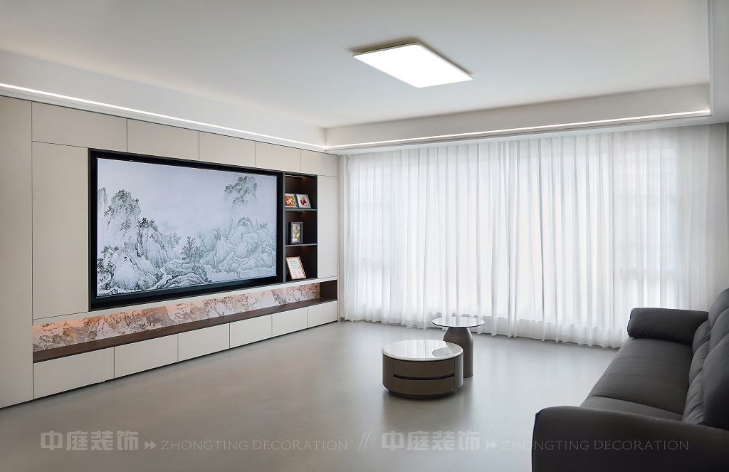 瀏覽量:166客廳電視背景墻的山水畫(huà)面,既具現(xiàn)代設(shè)計(jì)的視覺(jué)沖擊力,又蘊(yùn)含傳統(tǒng)山水意境。材質(zhì)上選用簡(jiǎn)約的板材、大理石與金屬元素,搭配簡(jiǎn)潔的家具造型,呈現(xiàn)出低調(diào)的奢華感。燈光設(shè)計(jì)以線(xiàn)性燈和嵌入式燈具為主,通過(guò)柔和的光影強(qiáng)化空間層次。同時(shí),在簡(jiǎn)約的布局中融入對(duì)生活細(xì)節(jié)的考量,讓整個(gè)空間既符合現(xiàn)代都市人的審美需求,又傳遞出含蓄的東方美學(xué)意境,實(shí)現(xiàn)了功能性與藝術(shù)性的平衡,打造出舒適且富有格調(diào)的居住環(huán)境。