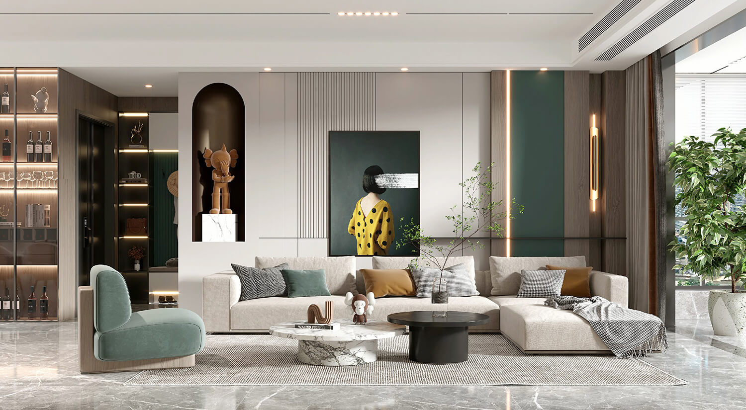 瀏覽量:561顏色搭配也是現(xiàn)代輕奢風(fēng)格的重要部分。通常使用大面積的中性色調(diào),如白色、灰色、米色等,這些顏色可以使空間更加明亮、舒適。同時(shí),也會(huì)加入少量的金屬色調(diào)和珠光色,如金色、銀色、香檳色等,讓空間更具奢華感。