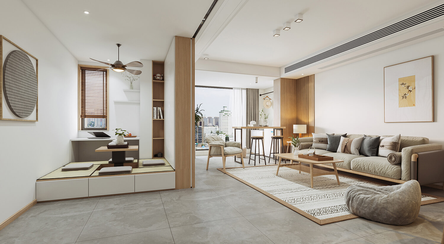 瀏覽量:459天然的材質(zhì),簡(jiǎn)約的線條,使居住環(huán)境舒適溫馨。日式風(fēng)格比較注重空間的分隔以及它的流動(dòng),空間感很明朗。